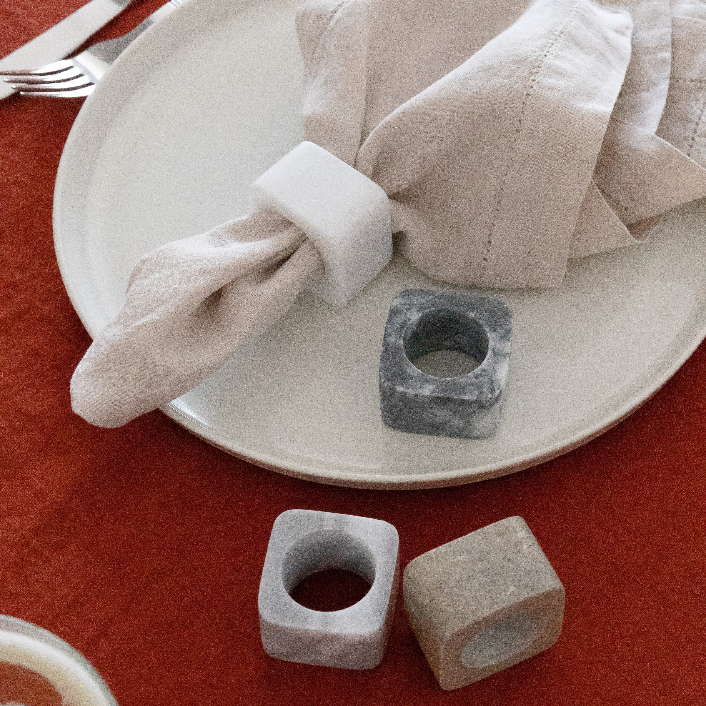 Add a touch of luxury to your table setting with the unique Kai Marble Napkin Ring. Designed with a square shape and a round cut inside, this napkin ring is made to stand out and elevate your dining experience. Ideal for special occasions or dinner parties, it will impress your guests and make a lasting impression. Kai Napkin Ring is easy to clean and maintain, making it a practical addition to your table setting. It's the perfect complement to any tablecloth or napkin and is sure to elevate the overall look of your table. Each set includes 2 napkin rings.