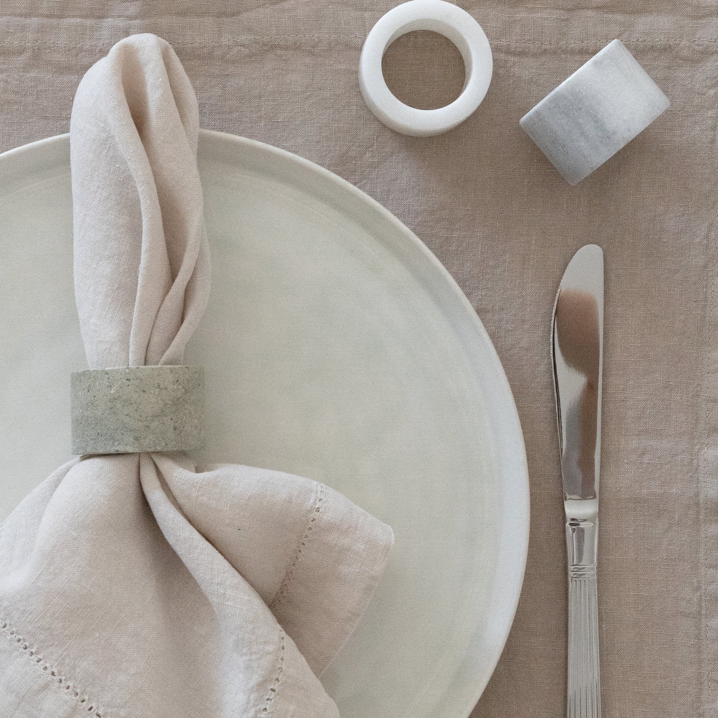 Elevate your table setting with Mia Marble Napkin Rings. Each napkin ring is expertly crafted from premium marble. The natural veining patterns of the marble give each ring a one-of-a-kind look. The round design makes it perfect for casual dinners and everyday use, while the natural beauty of the marble adds a touch of sophistication to any table setting. Each set includes 2 napkin rings.