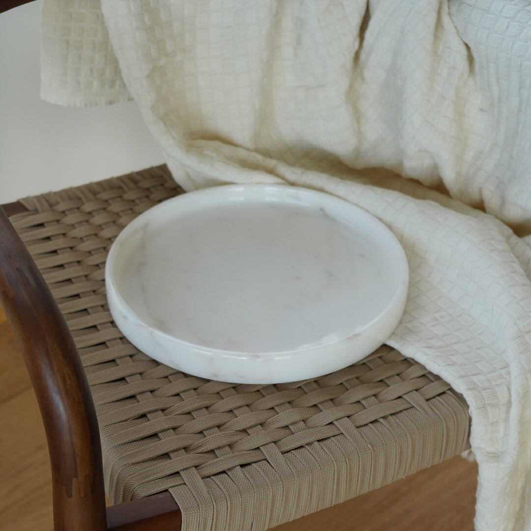Introducing the Raya Marble Tray White - a timeless round tray crafted from white marble. Its clean and elegant design adds a touch of sophistication to any space. The smooth, polished surface provides a beautiful backdrop for showcasing your cherished decor pieces. With its enduring quality, this tray is a lasting addition that will enhance the aesthetics of your home decor.